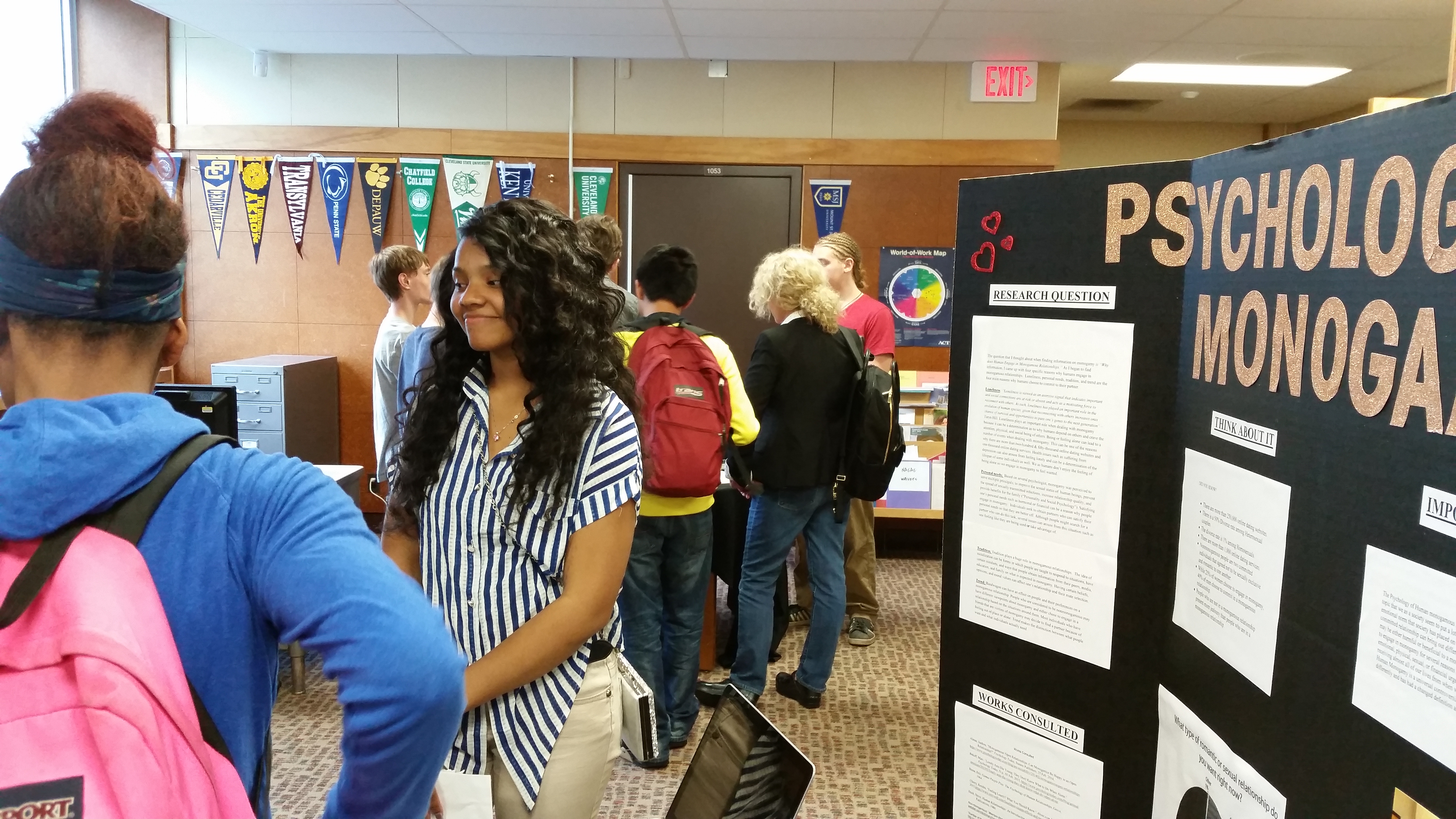 The senior team of teachers provides academic support in classes with a curriculum that overlaps some of the same ideas that students are exploring. Students writing about race find readings in psychology class that work as evidence for their research. (On the playground at lunch, older students will inevitably respond to statements about a person’s race with the quote, “Race is a social construct!”) Additionally, standard research format is taught and reinforced. One of our 2016 graduates, Syirra Roberts, reported to me that her freshman psychology teacher pulled her aside after three weeks of class and asked which high school Syirra had attended. Her test scores and classroom responses revealed a deep understanding of the topics being discussed, and her professor asked her to pass on his respect to her high school psychology teacher.