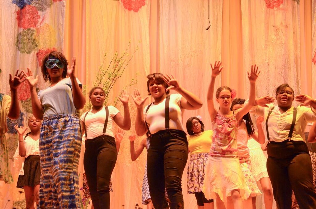 In the 2015-16 school year, Gamble Montessori earned a chance to participate in a groundbreaking new theatre program through a competitive application process. The Educational Theatre Association (EdTA), a large national actors’ guild, had initiated a program called JumpStart. Designed to help schools develop drama and theater programs, JumpStart targets schools that have no drama program. They provide training for teachers, access to modified musical scores which are tagged with the label “Jr.” (e.g. Once on This Island, Jr., or Annie, Jr.), and a structure for staging your own middle school musical in the spring.